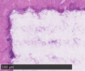 As tissue absorbs the energy of the 10s – 100s picosecond pulses at the mid-infrared wavelength faster than the thermal and acoustic diffusion time of tissue, the technology, as shown below, enables highly precise ablation of tissue in the focus region whilst simultaneously minimising damage to the surrounding tissue. This collateral damage free ablation is a key advantage of the technology, and when compared to commonly used existing laser technology the differences are stark (see images below).